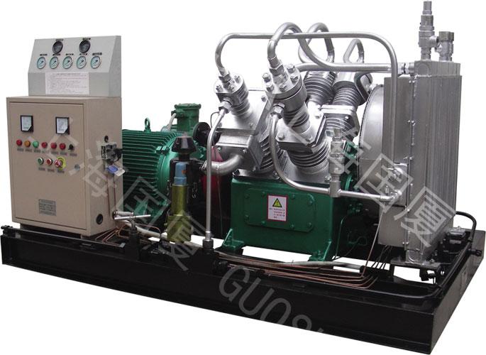 400公斤壓力空氣壓縮機(jī)主要用于油田注汽,鉆井、海洋勘探,軍工,檢漏,吹掃,船舶等行業(yè)。廣泛適用于油田專用開采、化工、有色金屬、科研院校、國(guó)防軍工、氣密性檢測(cè)、航天航空等領(lǐng)域。DX系列400公斤壓力空氣壓縮機(jī)由上海國(guó)廈壓縮機(jī)有限公司研發(fā)生產(chǎn),是一種高壓力且大排量的高壓供氣設(shè)備。具有能耗低,性能穩(wěn)定,維護(hù)簡(jiǎn)單的優(yōu)點(diǎn),且結(jié)構(gòu)緊湊,占地面積小,造型美觀,設(shè)計(jì)先進(jìn),機(jī)組振動(dòng)小,由電動(dòng)機(jī)或柴油機(jī)驅(qū)動(dòng),性價(jià)比高于國(guó)外同類產(chǎn)品。作為中國(guó)軍用壓縮機(jī)的搖籃,建廠10余年來國(guó)廈壓縮機(jī)因質(zhì)量高信譽(yù)好而蜚聲海內(nèi)外。400公斤壓力空氣壓縮機(jī)的工作原理是將自然狀態(tài)下的空氣經(jīng)過五級(jí)壓縮,終壓縮為10Mpa-40Mpa(兆帕)的壓力另外我司高壓空氣壓縮機(jī)可根據(jù)用戶要求靈活設(shè)計(jì)產(chǎn)品的壓力和排氣量,小型高壓空氣壓縮機(jī)的每分鐘排氣量0.1-0.5立方,壓力高達(dá)40MPA,重量小的只有40Kg;大型高壓空氣壓縮機(jī)每分鐘排氣量1-60立方,壓力高可達(dá)40MPA,客戶要根據(jù)自己的要求靈活選擇合適的壓力和排氣量,本文僅僅是部分樣品。